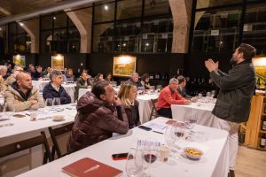 Antes de la comida preparamos la sala «la biblioteca» y tuvimos el placer de realizar una cata privada dirigida por su enólogo Cesar León. Una experiencia espectacular donde los asistentes pudieron aprender sobre el vino de Rioja, sus variedades y su elaboración.